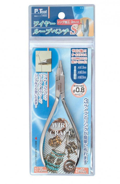 | 仕様 | 135mm 使用最大線径:φ0.8mm以下 サイズ:約φ1.5、2.0、2.5mm 先端硬度:HRC約40度 3段階方式丸型曲げ用 ステンの材質:USA 規格AISI410American、Iron、and、Steel、Institute |