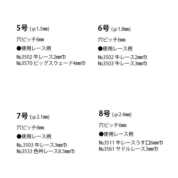 目打の平穴に比べレース選択の自由度が高く、穴径より広いレースや厚手のレースにも対応します。