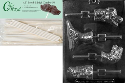 Cybrtrayd 45St50-A129 Dinosaur Lolly Animal Chocolate Candy Mold with 50 4.5-Inch Lollipop Sticks