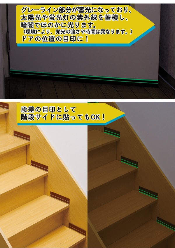 | ドア下の隙間をふさぐ蓄光入りのすきまテープです。冬はすきま風を防いで、夏はエアコンの冷気を逃さず、オールシーズンご使用いただけます。ホコリや花粉の侵入防止にも!グレーライン部分が蓄光になっており、暗闇でほのかに光るので、扉の位置が分かりやすい!段差の目印として、階段サイドに貼ってもOK。取り付けやすい裏面シールタイプ。ドア下のすきまをふさいで空調効率アップ! |