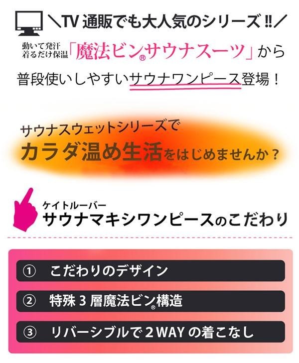 | 普段使いしやすいサウナワンピースが登場!!スッキリ見せる縫製で、便利なポケット付&胸元には可愛いロゴ付☆ |