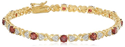 -. Title : 18k Yellow Gold and Rhodium Plated Sterling Silver Two Tone Round Garnet 4mm Bracelet, 7.25"