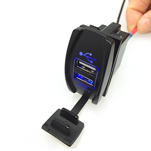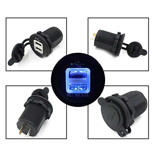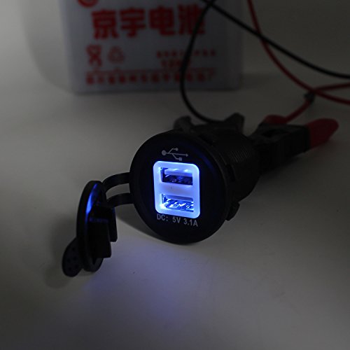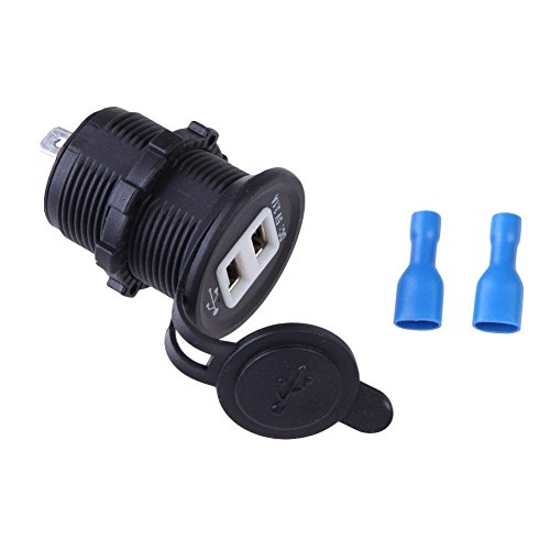 Features: 100% brand new and high quality Suitable for motorcycle cross bike, scooters, car, boat, RV, etc. With 2 USB outlet, convenient and high efficient. With dustproof cover, LED light, waterproof, safe and easy to use. Fast to install. Pass CE certificate. Input Voltage:12V-24V USB Output Voltage: 5V Output Current: 3.1ASize: 5*3.7CM What is Includes:1x dual USB Charger Adapter 1x wire terminalsFeature