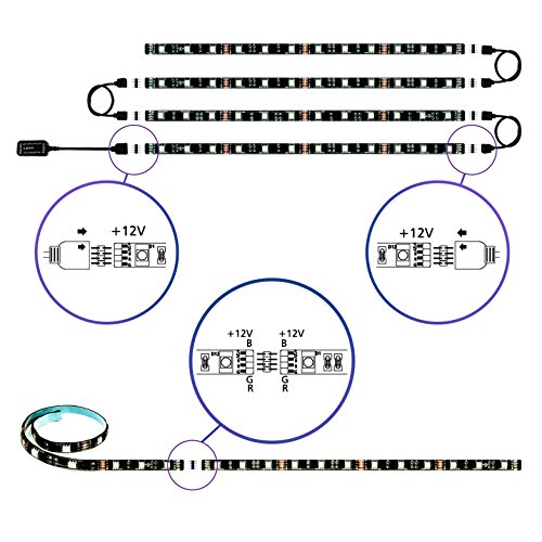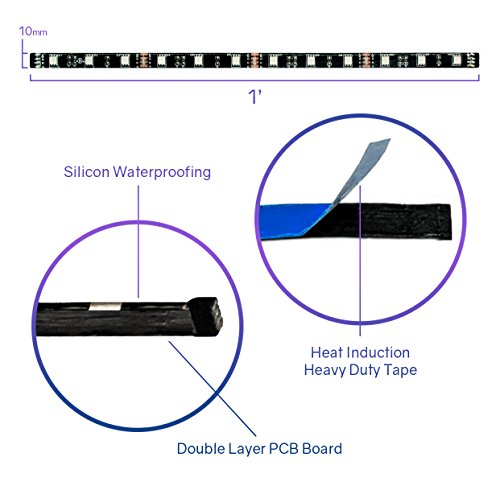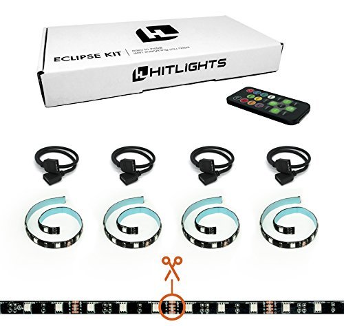 Our Eclipse kits are designed by our in-house LED experts to put the FUN into functional by taking the pain out of installing RGB LED strips. Our pre-cut strips mean NO searching for the right place to cut, NO fooling with connectors, and NO frustration with inconsistent, flickering lighting. These strips are TRULY plug and play.Each kit comes with a compact power supply with a four foot output cord, an Eclipse RGB controller / remote combo, four one foot weatherproof RGB Eclipse LED strip lights (backed with heavy duty adhesive tape), four one foot plug and play extension wires with 4-pin input and output plugs, and eight adhesive backed wire clips to keep everything neat, tidy, and out of the way - so all you'll see is the light from our high output RGB LED chips.