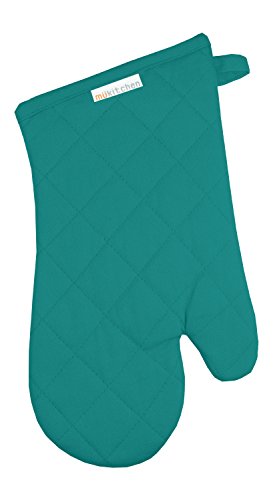 MUkitchen 100% Quilted Cotton Oven Mitt, Teal - 13 inches