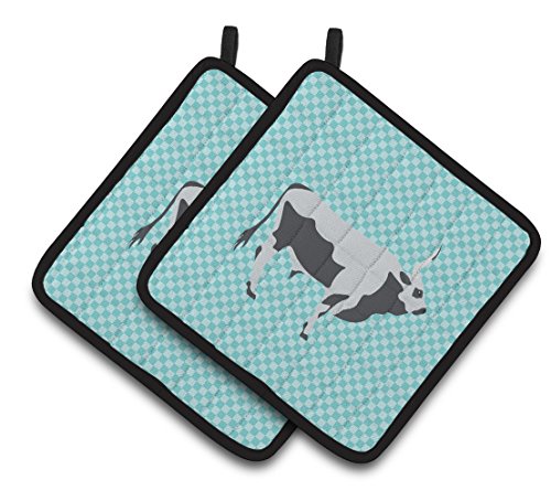 Caroline's Treasures BB7998PTHD Hungarian Grey Steppe Cow Blue Check Decorated Pot Holder, 7.5" x 7.5", Multicolor