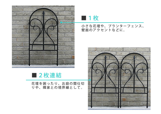 ●フェンスとしてだけでなく、複数枚つなげれば正方形・長方形の花壇を作ることができます