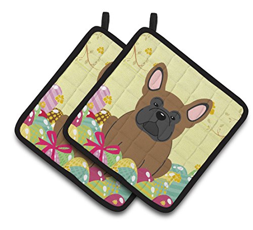 Caroline's Treasures Easter French Bulldog Brown Pair of Pot Holders, 7.5HX7.5W, Multicolor