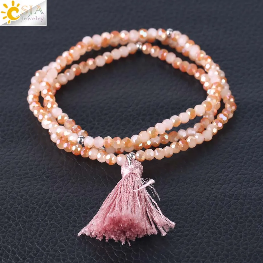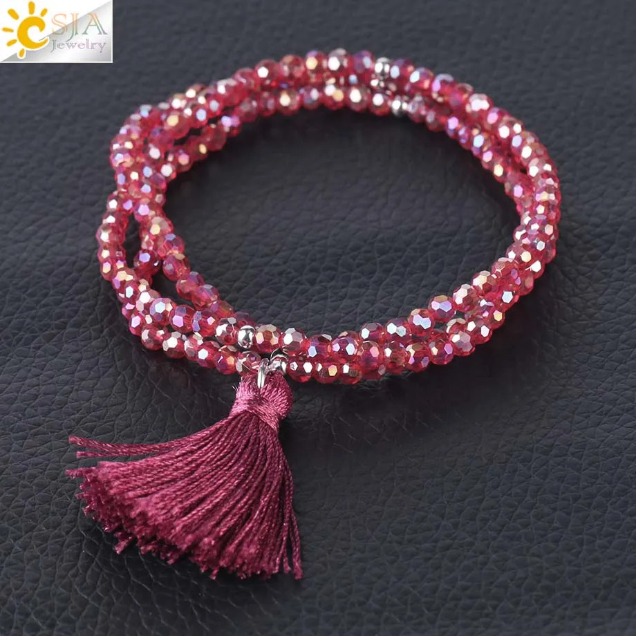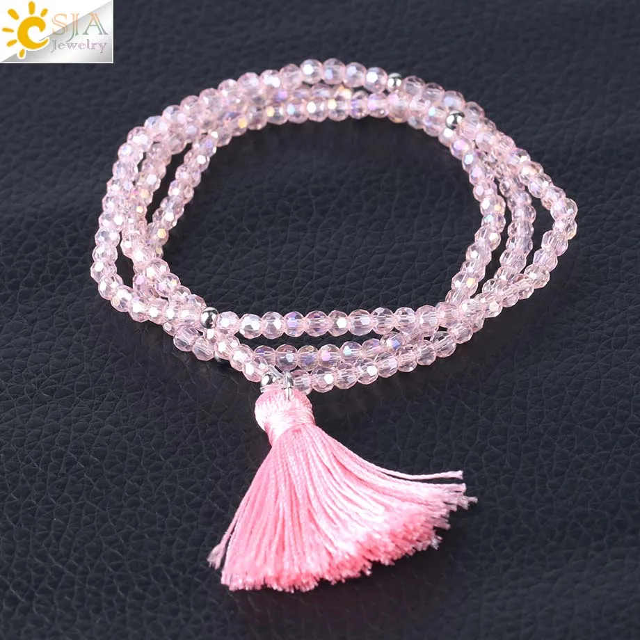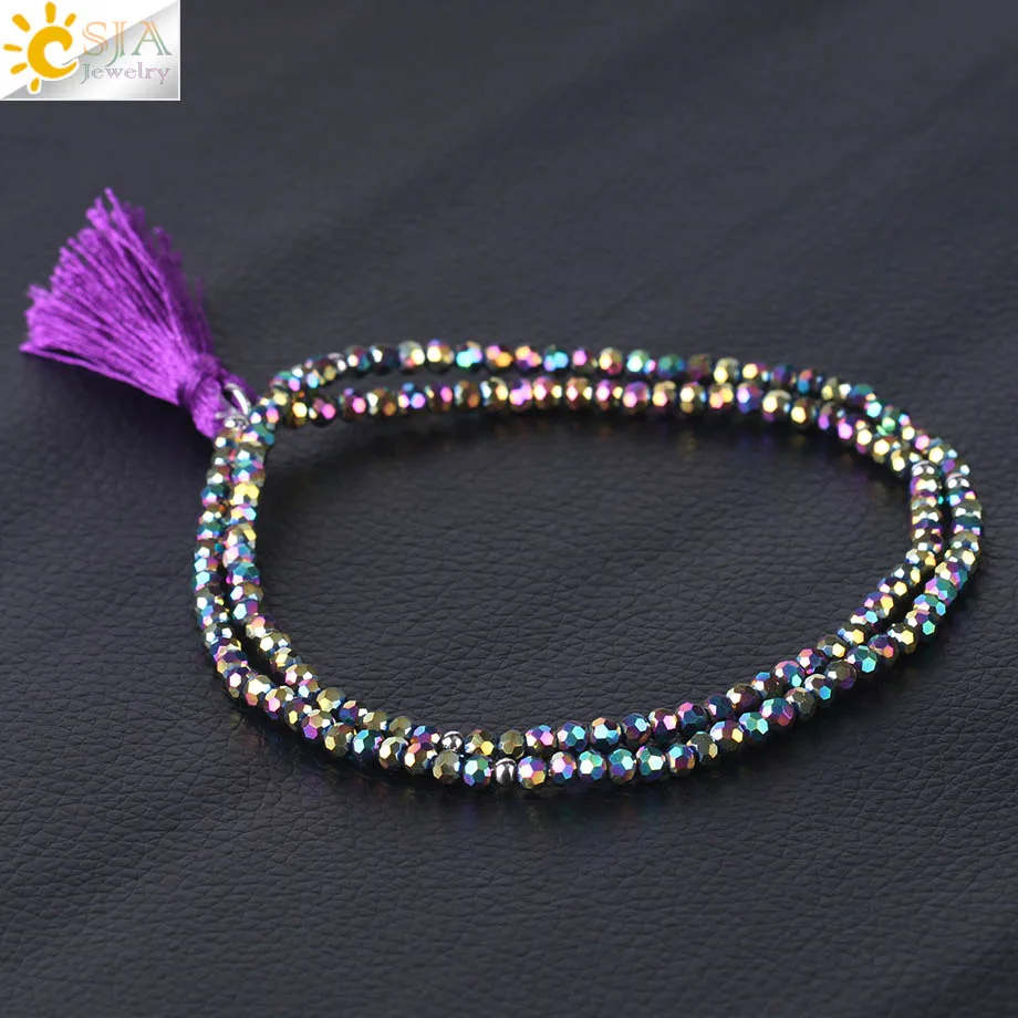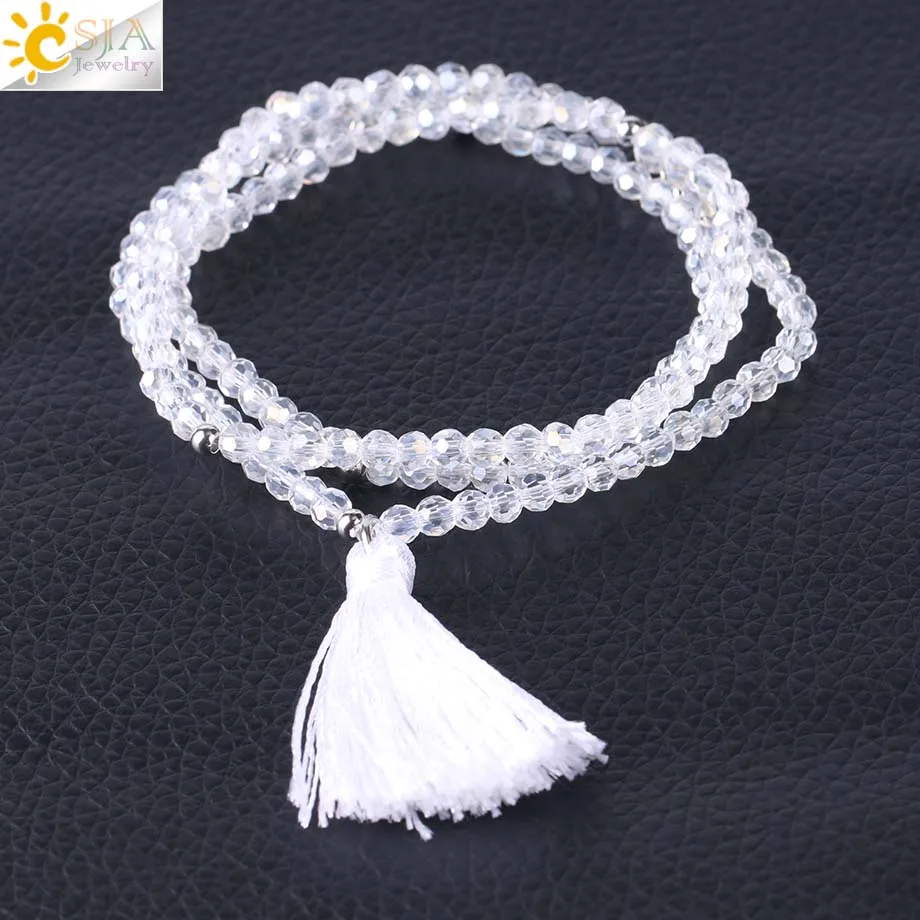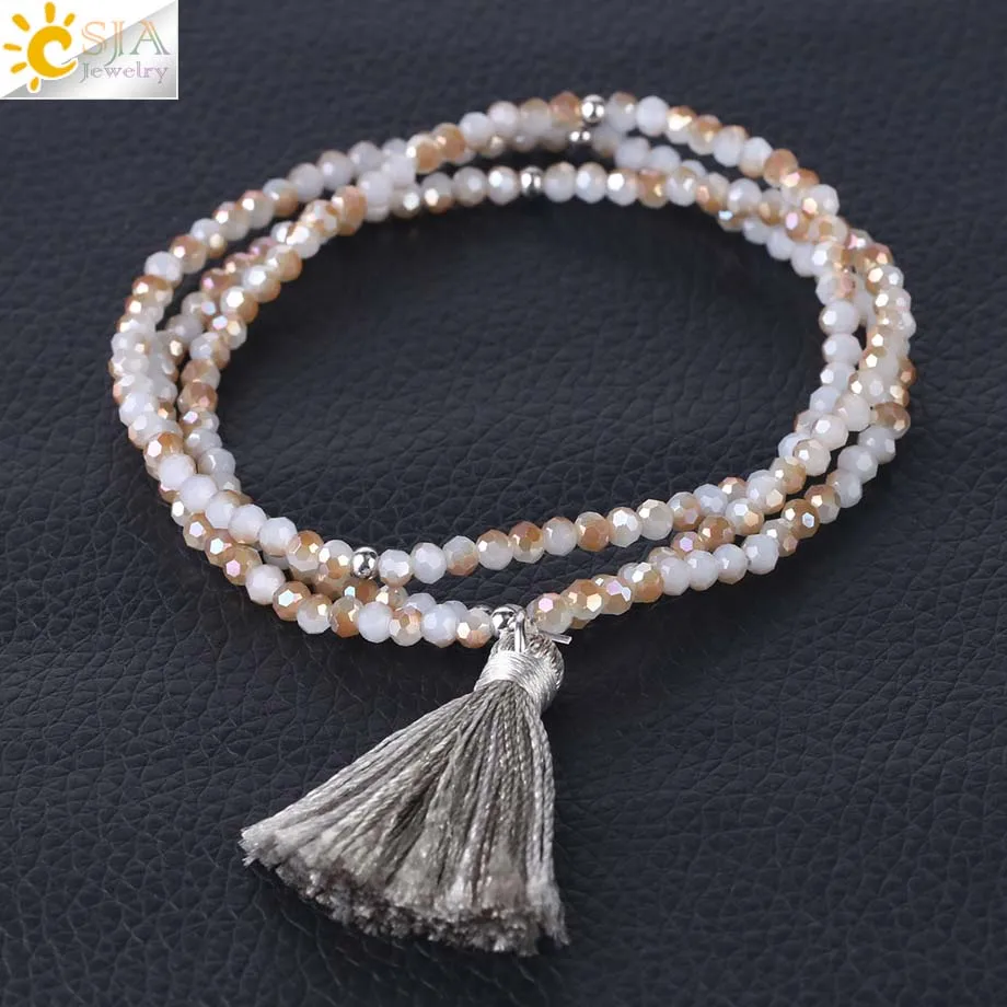 Product Name :Boho Silk Tassel Bracelet Tiny Faceted Crystal Bracelets Elastic Rope