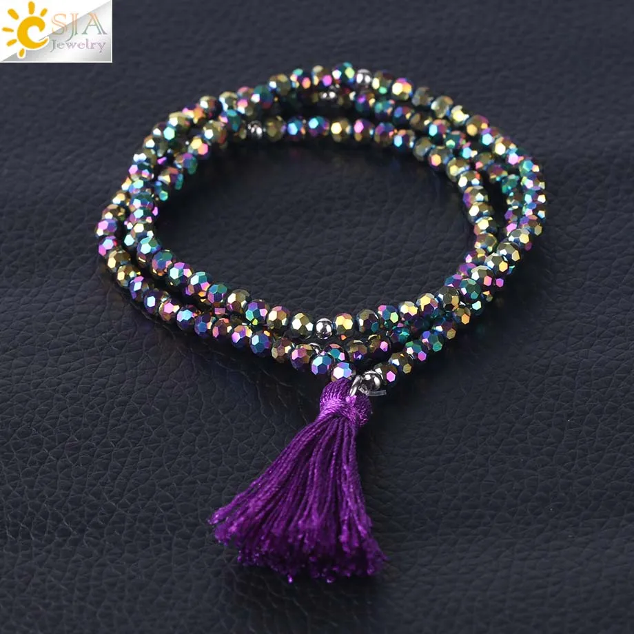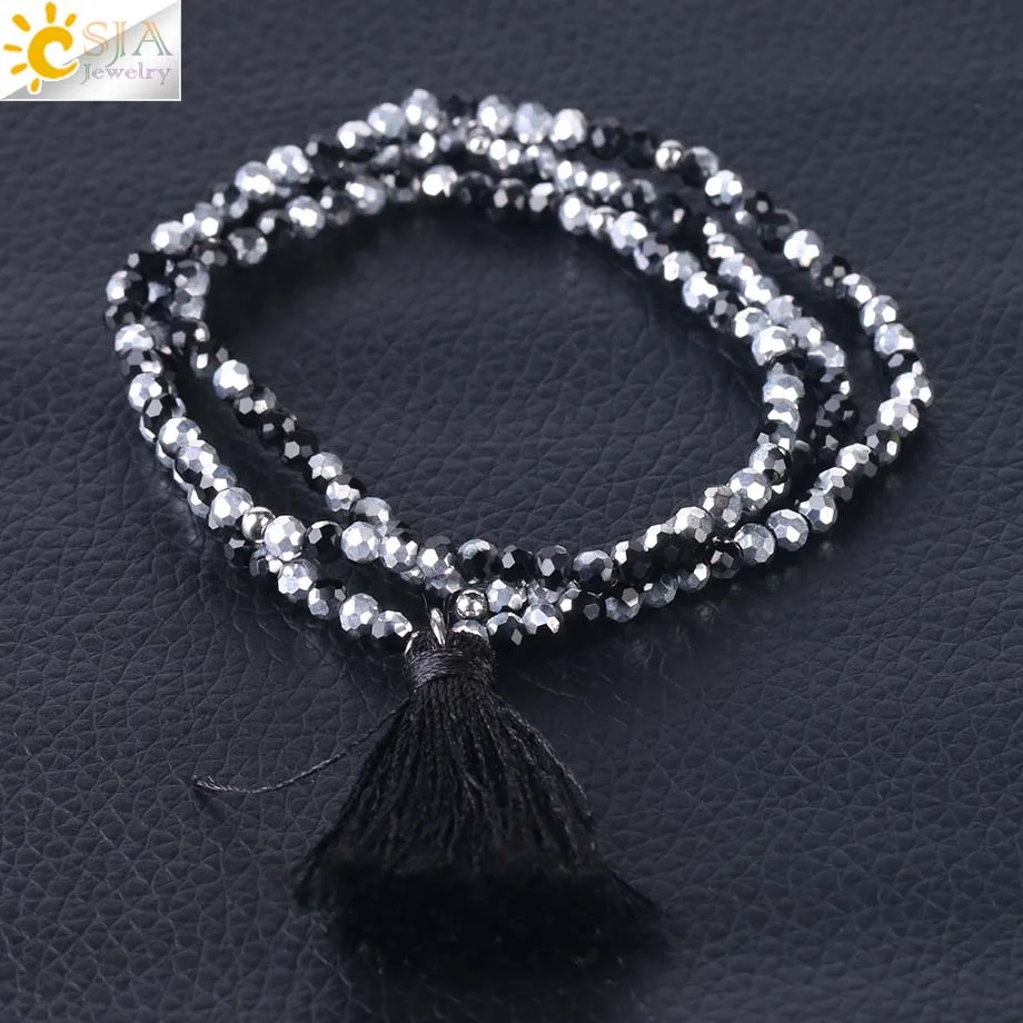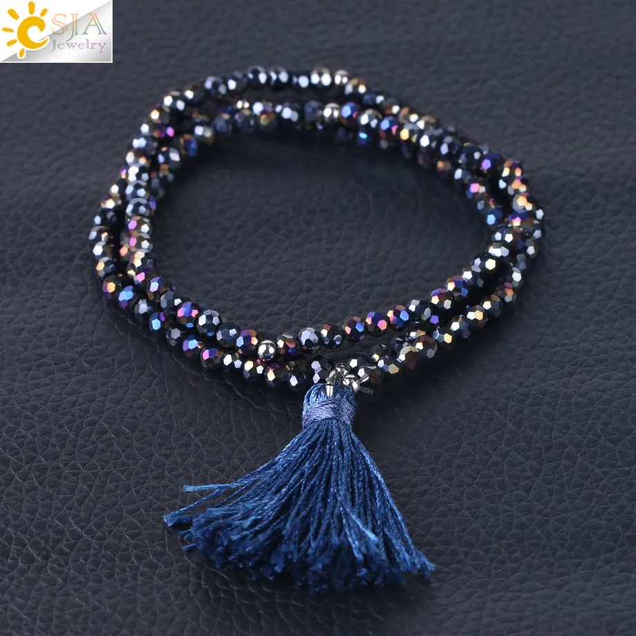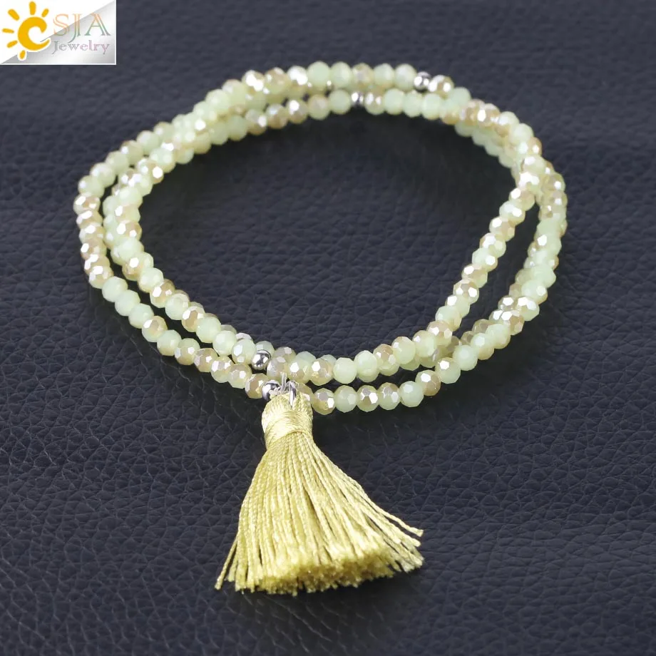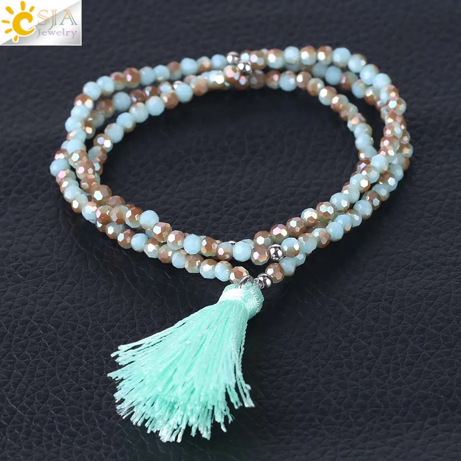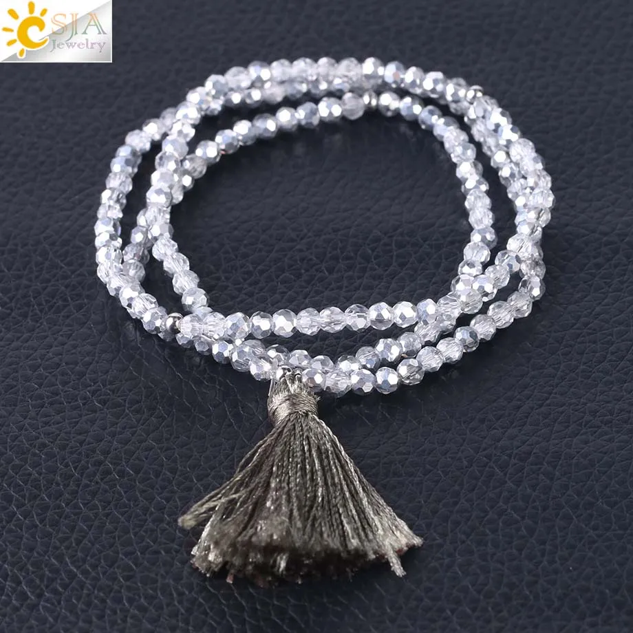 Product Name :Boho Silk Tassel Bracelet Tiny Faceted Crystal Bracelets Elastic Rope