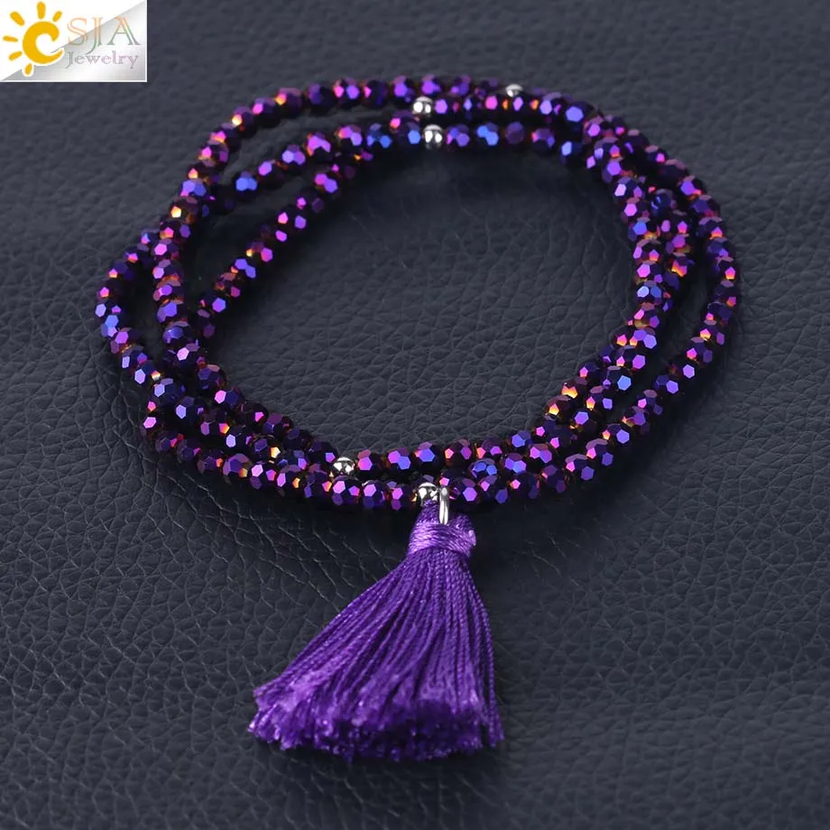Product Feature:3mm Crystal Bead + Elastic + Fringe Tassel + Multilayer + Multicolor