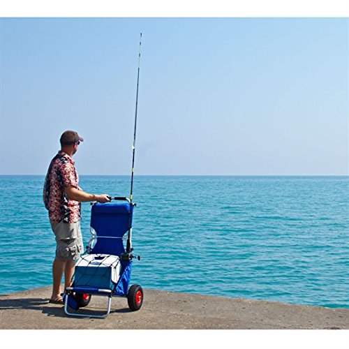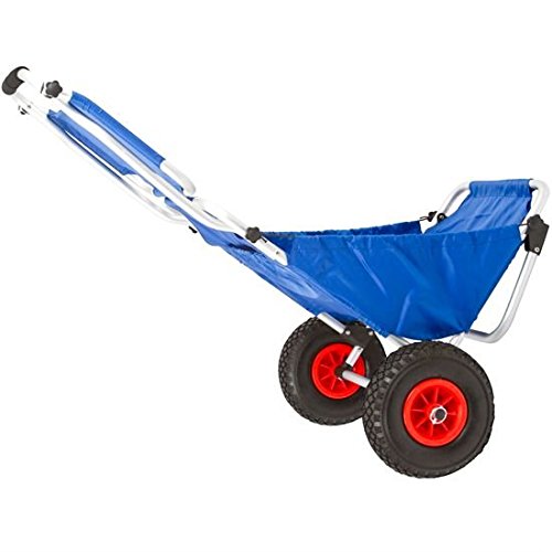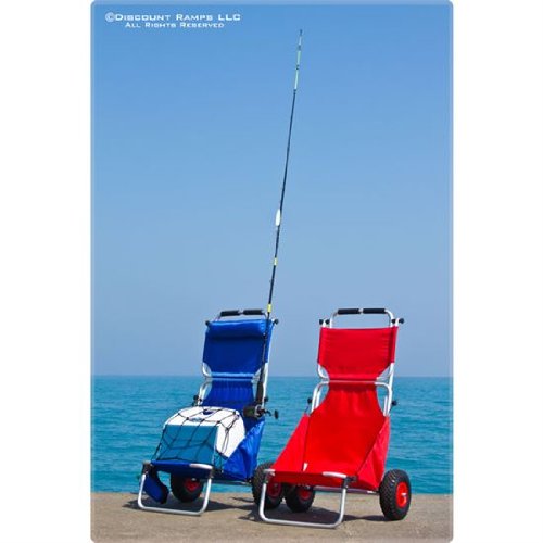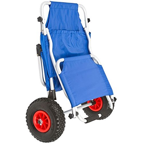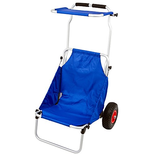 Folding beach or fishing chair and cart with an adjustable sun visor. Works great as a beach cart for carrying items down to the beach area. Quickly folds compact for storage and transportation in a vehicle between uses. Low profile design makes for comfortable relaxation on the beach. Measures 16" x 17.75" x 41" overall. Made with washable nylon fabric material. 0 |