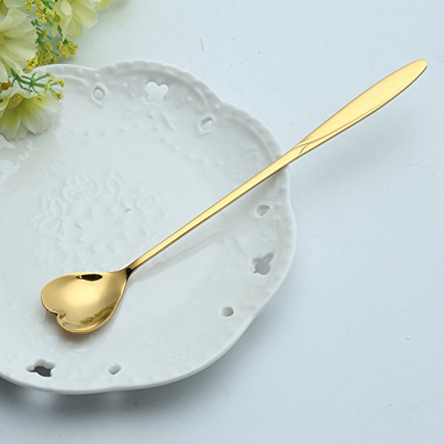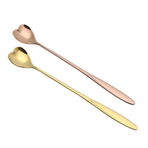 Verdental Heart Shaped 7 inch Stainless Steel Couple Spoon Set of 2