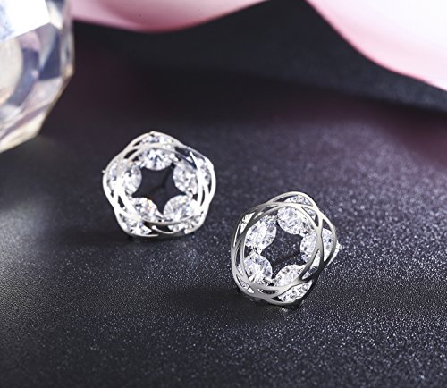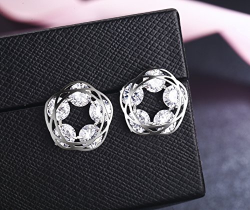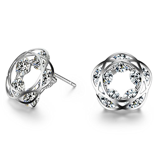 18K White Gold Plated Flower Stud Earrings featuring vivid Cubic Zirconia