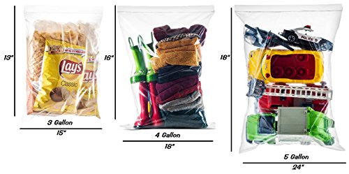 HIGH-QUALITY, STORAGE BAGS. Large and durable, these heavy-duty, bags are made using 2 mil thick plastic to keep food fresh and your belongings safe and secure. They’re clear so you can easily see the contents inside, and include a zip-locking closure for easy sealing and protecting the items inside. Strong CLEAR 2 Gallon Ziploc Bags 13"x15"