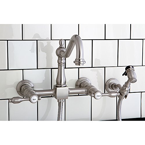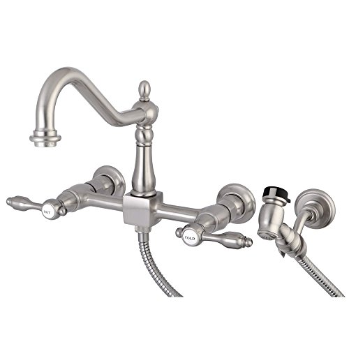 Kingston Brass KS1248TALBS Tudor 8 Inch Center Kitchen Faucet With Brass Sprayer, Satin Nickel, 8-1/2 inch in Spout Reach, Satin Nickel