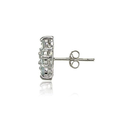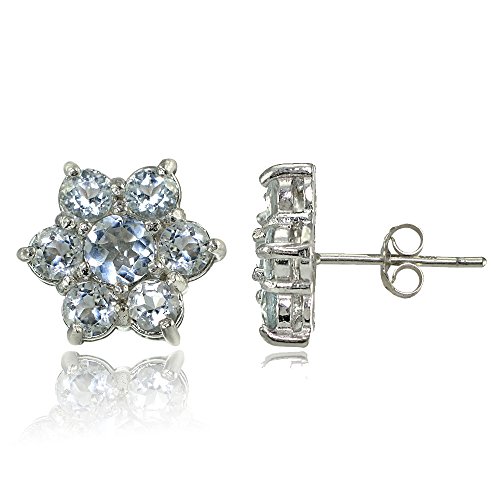 Sterling silver earrings feature flower-shaped clusters of round genuine aquamarine gemstones.