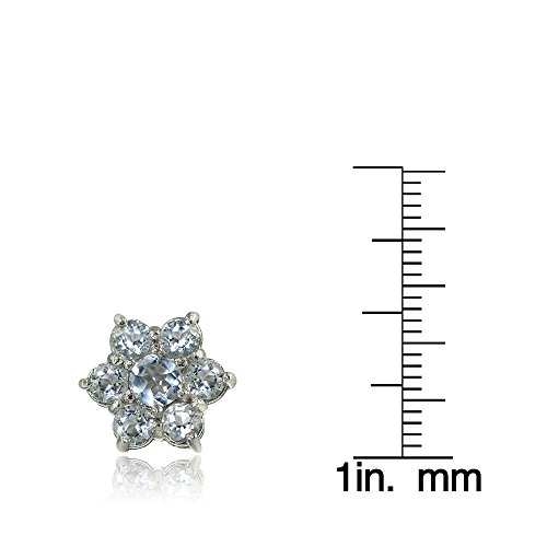 Simple and classic, these eye catching earrings are the perfect addition to any jewelry collection. These earrings features flower-shaped clusters of round aquamrine stones and is crafted of sterling silver. They are secured by post with friction backs.Feature