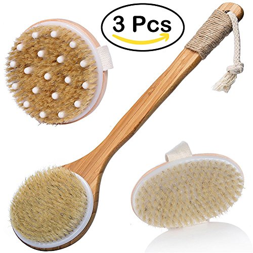 3PCS Dry Skin Body Brush, Bath Shower Brush with Natural Bristle Skin Massager Shower Brushes for Men Women Full Body Exfoliation, Dry Brushing, Skin...