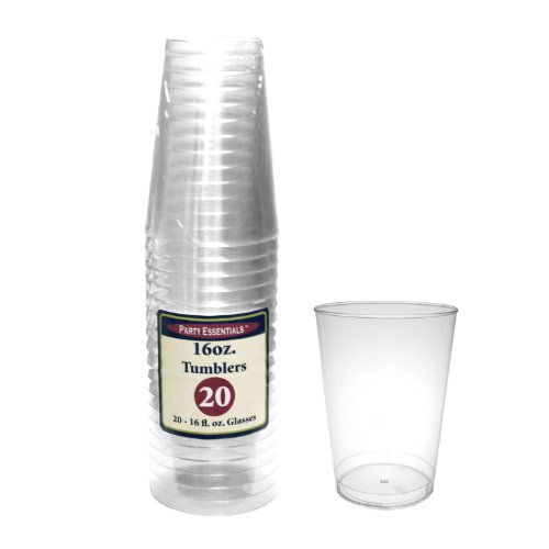 Party Essentials 20 Count Hard Plastic Party Cups, 16-Ounce, Pint Glasses, Clear