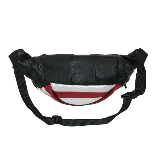 -. Feature : Leather American Flag Fanny Pack By CTM® / Genuine leather / Dimensions: 14 X 6 X 3" / Waist strap: up to 53" / 5 zippered pockets