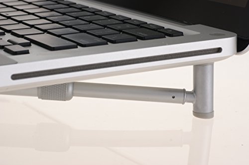 - Feature : Elevate laptop computer which drasticly increases airflow and prevents overheating / Easy to carry for this light weight laptop stand in just 5 oz, ultra compact in 6 inches when folded / Angles laptop for proper ergonomics and natural typing to reduce the stress for long time of using computer / Aluminum design provides solid stability for all laptops with screen size from 12 to 17 inches / Sand-blasted and silver anodized finish matches Apple notebooks, compatible with Apple Macbook Pro, Macbook Air and other laptops