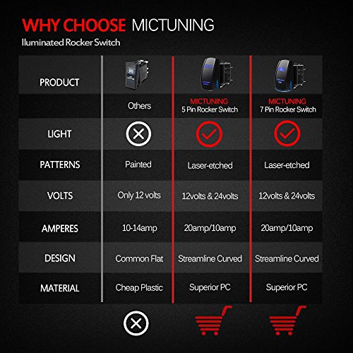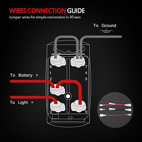 MicTuning MIC-LSL1 Laser On-Off Rocker Switch with Jumper Wire, 5 LED Work Light, Pin/20 Amp/12V