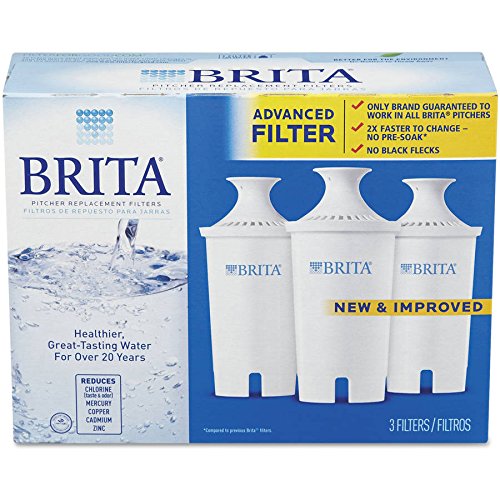 -. Feature : 3 pack of replacement water filters that fit all Brita pitchers and dispensers / 1 water filter can replace 300 standard 16.9 oz water bottles / Reduces chlorine taste and odor, zinc, copper, mercury and cadmium, often found in tap water / Replacement filter changes quickly and easily and requires no pre-soaking / For best performance change water filter every 40 gallons or 2 months