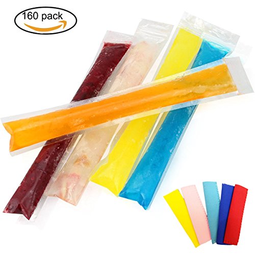 160 Packs Disposable DIY Ice Pop Mold Bags for Yogurt, Candy, Ice, Milk and Freeze Pops Making(Coming with 5 Free Ice Pop Sleeves) (160Pack)