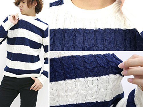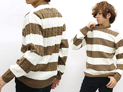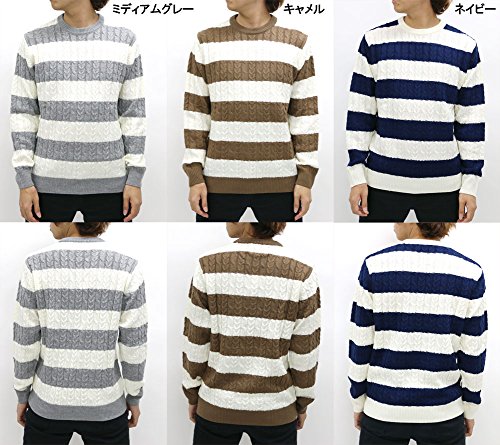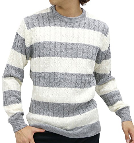 -. Title : TIMELY WARNING(タイムリーワーニング) ニット ケーブル ボーダー クルーネックセーター ミディアムグレー LL