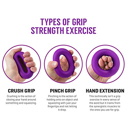 EXERCISE VARIOUS MUSCLES HAND GRIPS: Hand grips allows you to build muscles in the hand, fingers, and even forearm; it can also be used for isometric stretching for those in rehabilitation. These rings are great for training athletes, and giving their performance a positive boost.