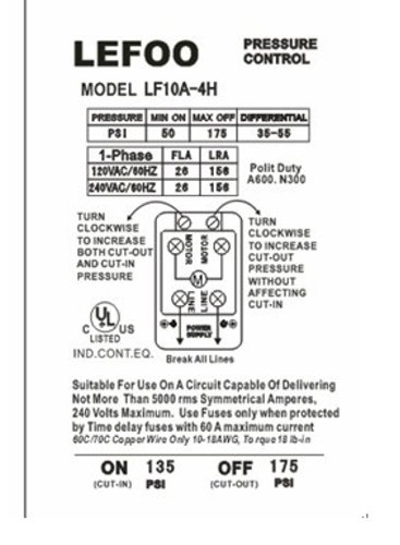 Heavy Duty Pressure Switch for Air Compressor 135-175 psi Four 4 Port 26 Amp by lefoo