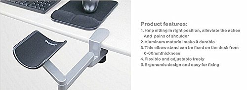 -. Binding : Office Product -. Brand : BTB® -. Feature : Keep correct posture, avoid cervical vertebrae ache, mouse hand & nearsightedness / With its unique design, you can now move freely, comfortably and effortlessly to perform your computer tasks. Recommend to computer user / Easy to Fix & Remove - Fits desk top up to 60mm thick / Durable & Lightweight - Aluminum Material / Effectively relieves 90% of the weight undertaken by your wrists; Also reduce stress from cervical vertebrae, shoulder& arm -. Label : Best to Buy® -. Manufacturer : Best to Buy® -. MPN : 178 -. PackageQuantity : 1 -. PartNumber : 178 -. ProductGroup : Office Product -. ProductTypeName : OFFICE_PRODUCTS -. Publisher : Best to Buy® -. Studio : Best to Buy® -. Title : Best to Buy® Home&Office Flexible Computer Ergonomic Design Arm Stand Computer Elbow Stand Laptop Arm Support Armrest Office Desk Extender Wrist Rest for Desk and Chair