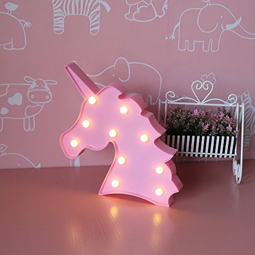 Glintee Unicorn LED Night Lamp Decorative Marquee Signs Battery Operated Light for Party Supplies -Wall Decoration for Living Room,Bedroom(Pink Unicorn Head)