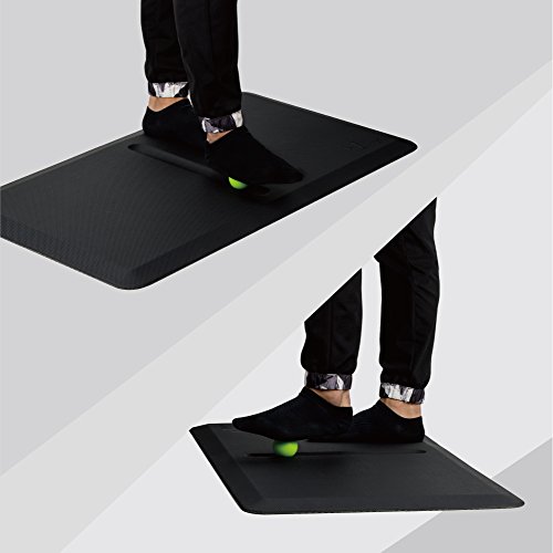 - INNOVATIVE STANDING DESK FLOOR MAT: This premium anti fatigue standing desk mat with groove and roller ball helps to relax your feet, legs, hips, and back; Helps you stand longer at ease and reduces the chance of work-related injury.
