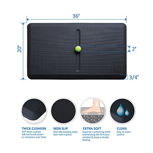 Mingo Premium 3/4" Active Anti-Fatigue Standing Comfort Mat with One Massage Ball for Home and Office, Ergonomically Engineered, Non-Toxic, Waterproof (Black) …