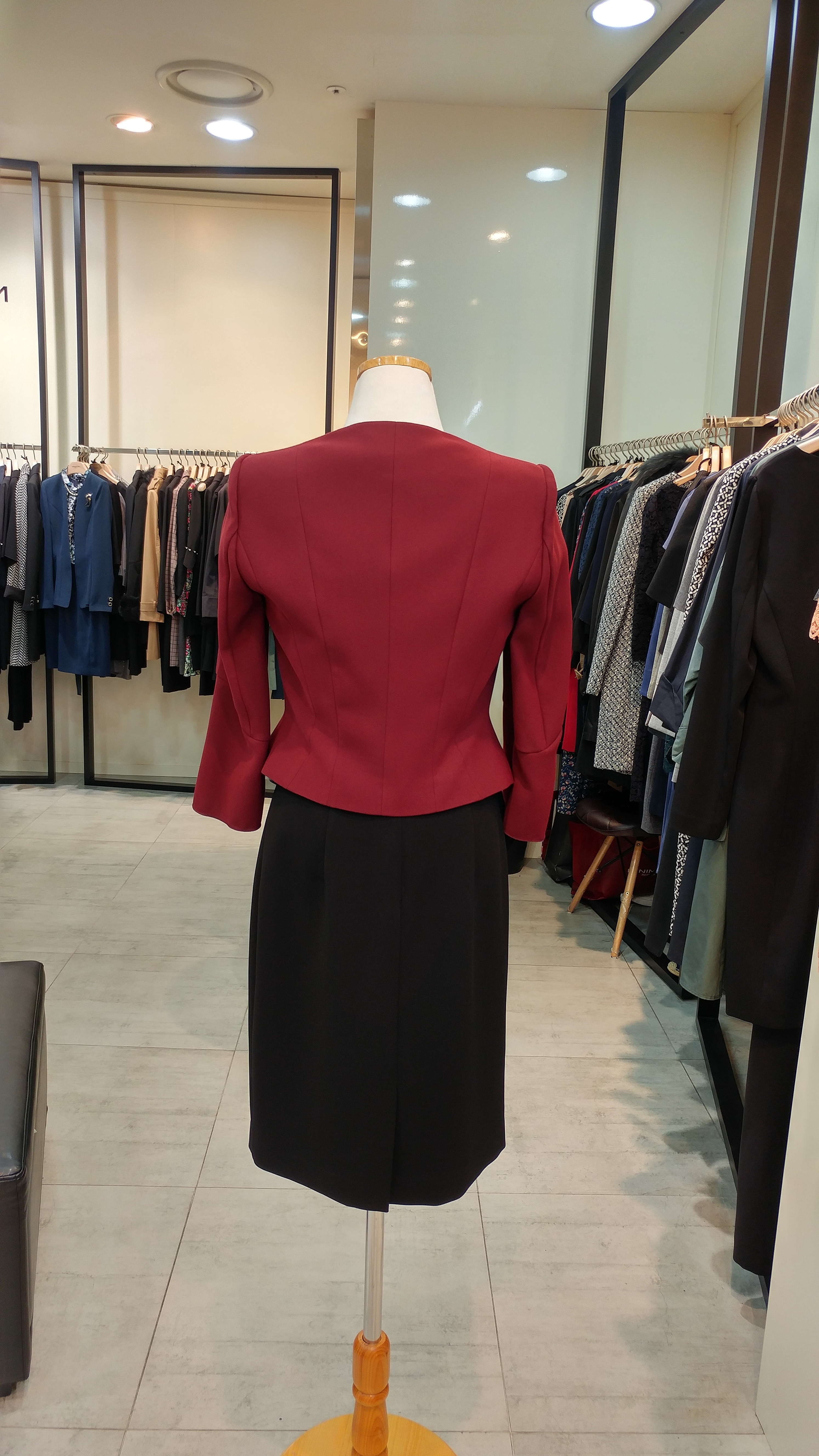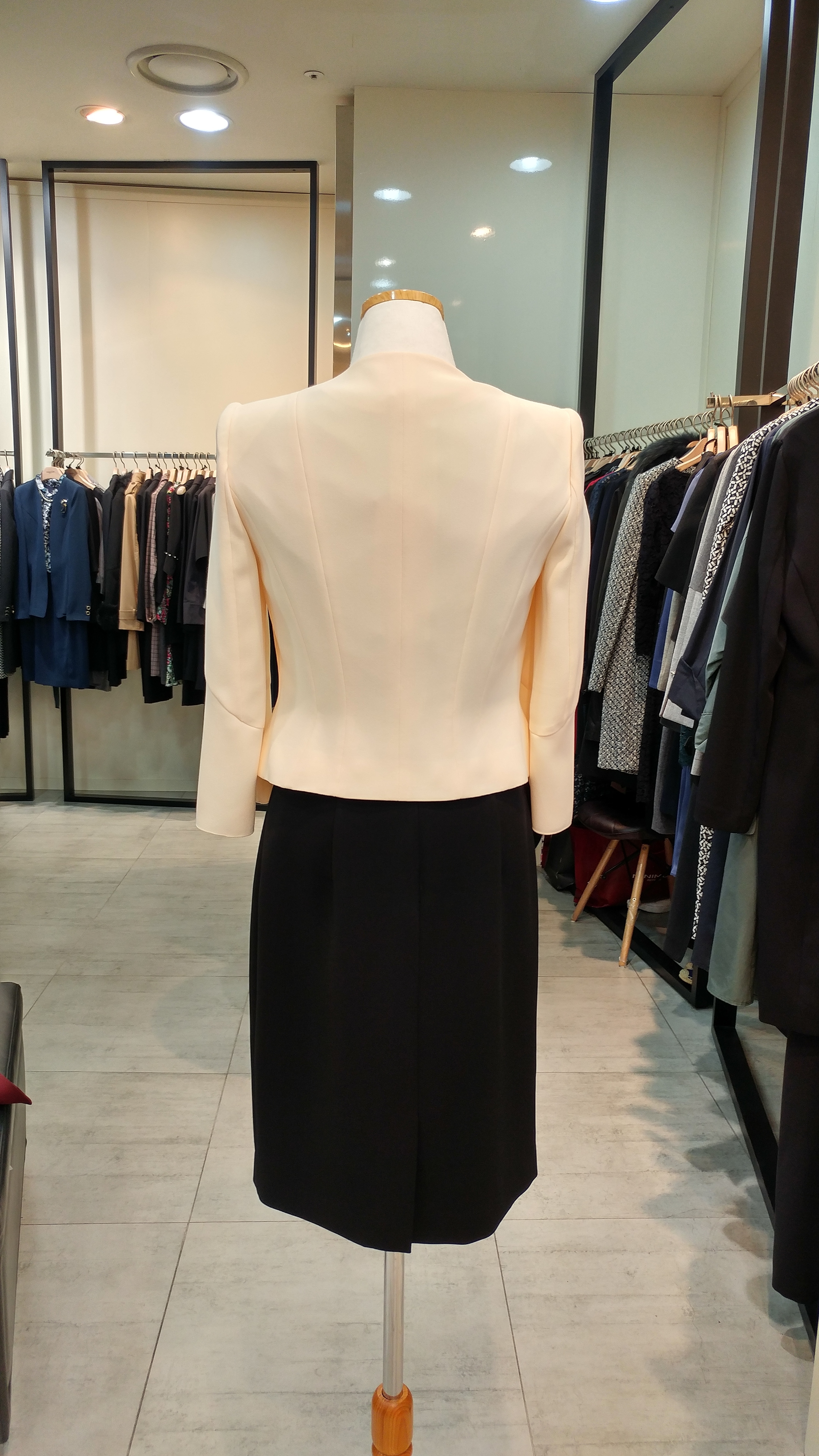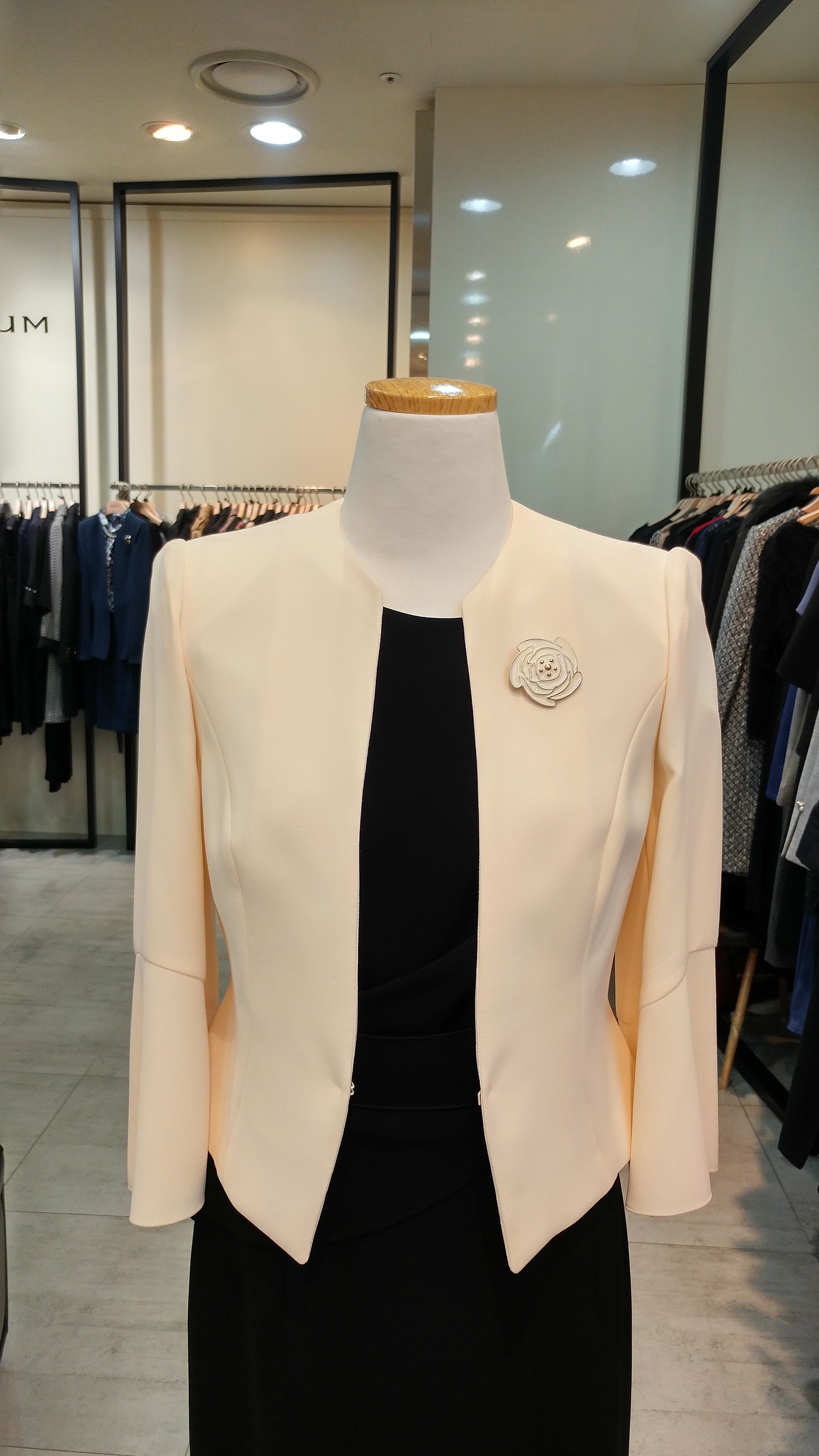 노카라숏쟈켓입니다^^ 7부벨소매와 브로치가포인트로  고급스러우며 세련미가돋보이는 스타일  총장45