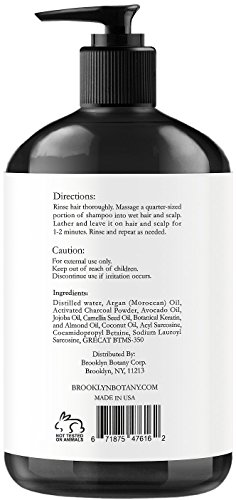 Activated Charcoal Shampoo 16 fl oz - Sulfate Free - Volumizing & Moisturizing, Gentle on Curly & Color Treated Hair, Daily Use for Men & Women - Infused with Keratin - Brooklyn Botany