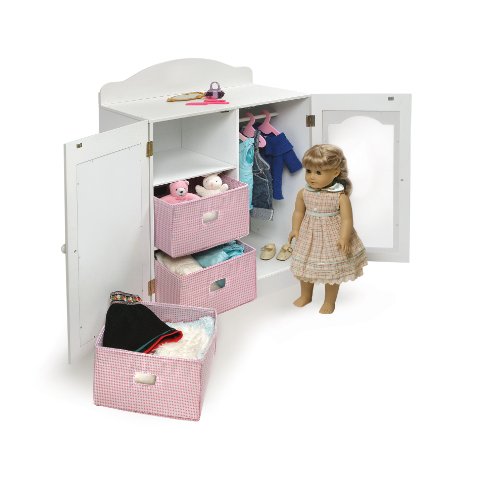 - Includes: armoire, 3 baskets, rod with 3 hangers, child safe mirror