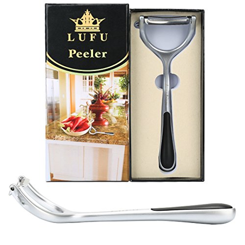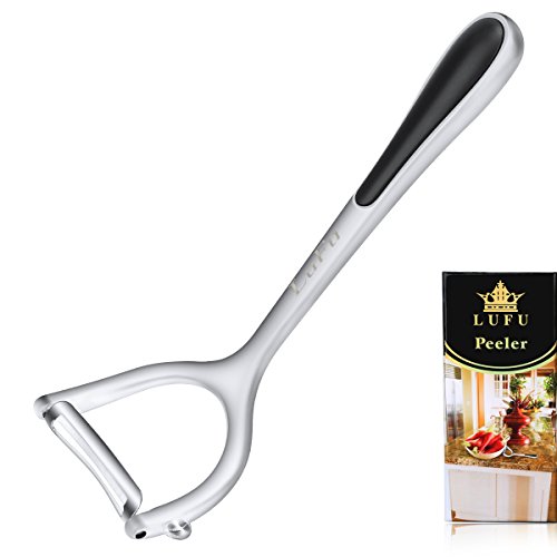 It is a professional vegetable and fruit peeler made of LUFU zinc alloy, sharp and durable rotary stainless steel blade and comfortable non-slip handle with rubber coating.