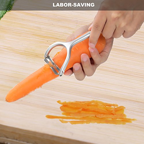 【Durable material】The rust-proof, light weight, high strength and ergonomically designed peeler is made of zinc alloy.