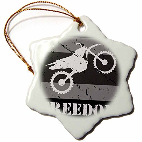 3dRose orn_180541_1 Black and White Distressed Dirt Bike Freedom Vector Graphic Image-Snowflake Ornament, Porcelain, 3-Inch