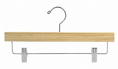 -. Feature : 14" Length / Adjustable Pant Clips w/ Soft Rubber Cushions / Chrome Hook / Made of Eco Friendly Bamboo / Sold in Packs of (25) Hangers