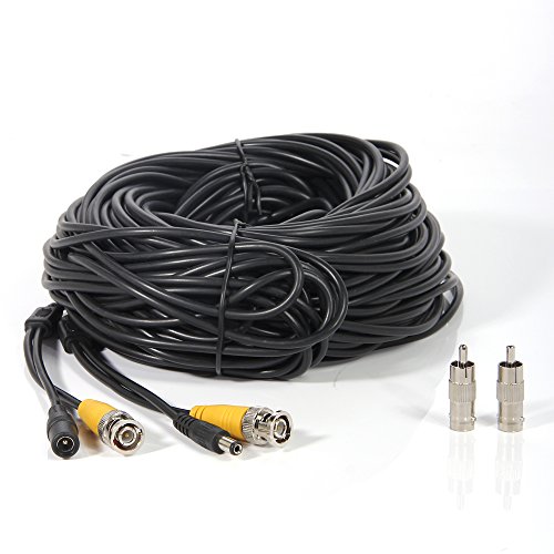 Masione 100ft Feet Video Power Cables BNC RCA Security Camera Wires Cords All-in-One for CCTV DVR Home Surveillance System with Bonus Connectors