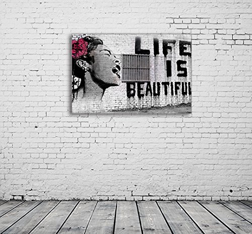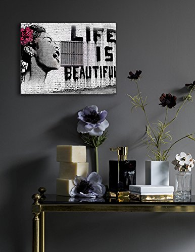 -. Feature : Beautiful Banksy Canvas Wall Art, made by PIY Painting (Registered Brand). / Waterproof and ECO-ink P.R.Ints, easy to clean by wet rag and apply to bathroom or kitchen also. / Stretched with 1" wooden frame on the back, hooks mounted and truly ready to hang at once. / A perfect choice for wall decor, home decoration or office decoration, and a great gift idea for your relatives and friends. PIY guarantees 100% satisfaction. If any defect, we accept return without any reason any time - Love it or your money back!