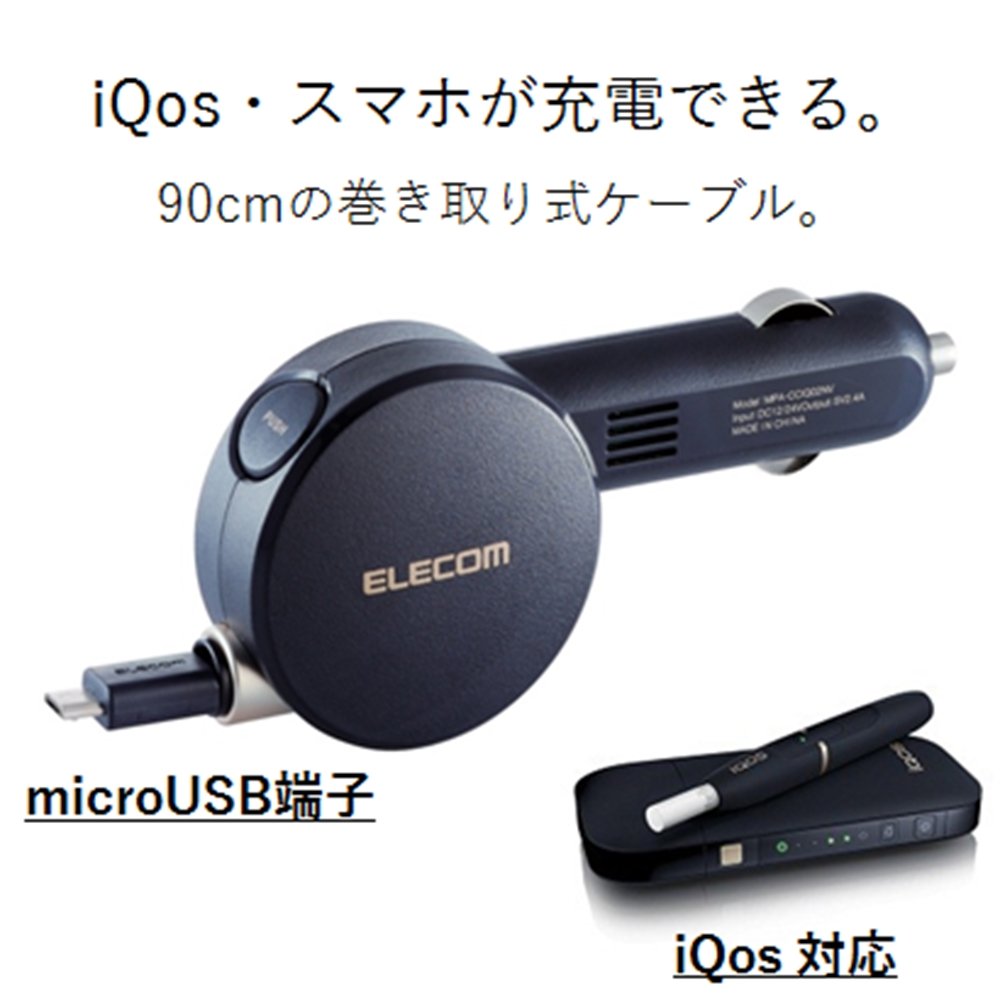 ■ It is an in-vehicle charger that can charge iQOS, smartphones, etc. via the microUSB connector from the car accessory socket.