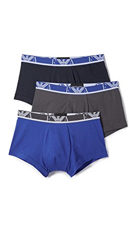 Emporio Armani Men's Stretch Cotton Ea 3 Pack Trunk, Smoke/Electric Blue/Marine, L