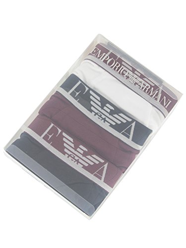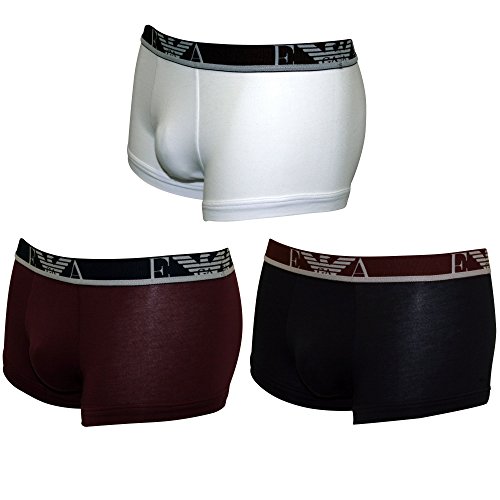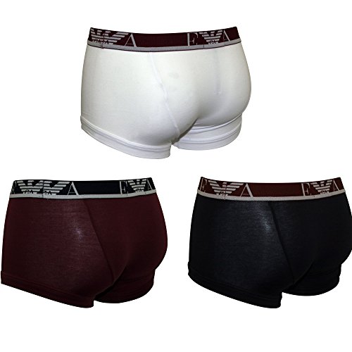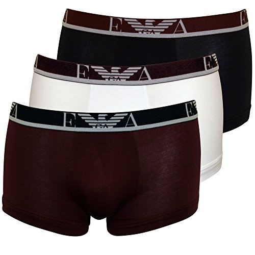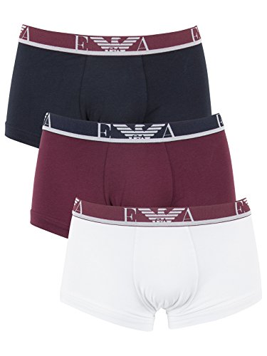 Emporio Armani Men's Stretch Cotton Ea 3 Pack Trunk, White/Aubergine/Marine, XL