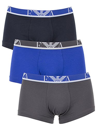 Emporio Armani Men's Stretch Cotton Ea 3 Pack Trunk, Smoke/Electric Blue/Marine, XL