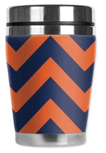 Mugzie Colors of Auburn Chevron "Mini" Travel Mug with Insulated Wetsuit Cover, 12 oz, Black